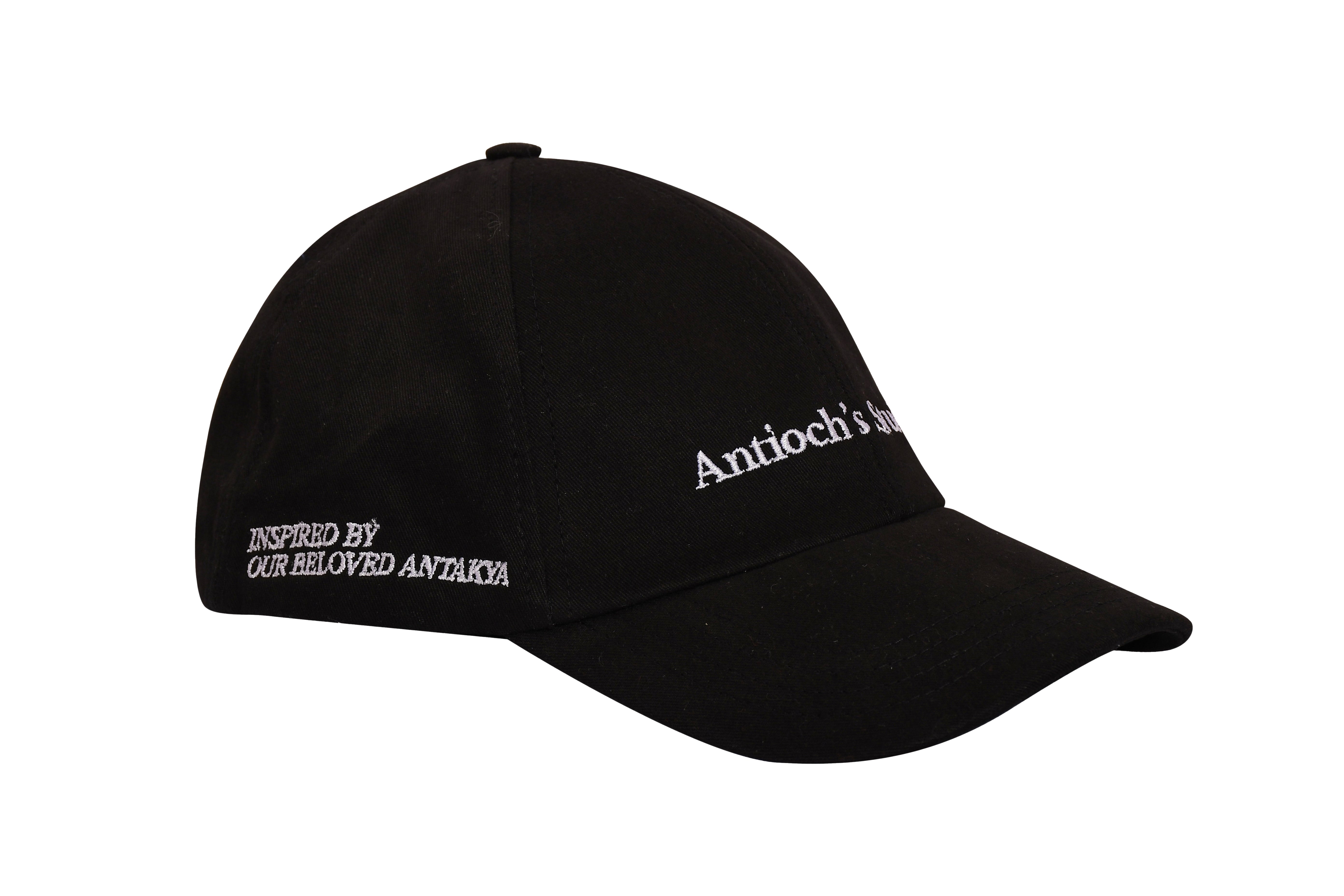 Signature siyah şapka, önde Antioch’s Studios logosu ve yanda “Inspired by our beloved Antakya” nakışı ile tasarlanmıştır. Ayrıca, arkada Bora Selim’in karikatür yüz imzasına sahip ayarlanabilir bir kayış bulunur.